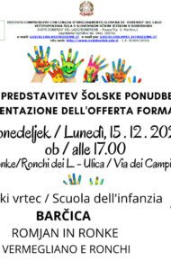 La Scuola dell'Infanzia BARČICA plesso Ronchi dei Legionari si trova in via Campi 2 e ospita 2 sezioni, che seguono il metodo Montessori.