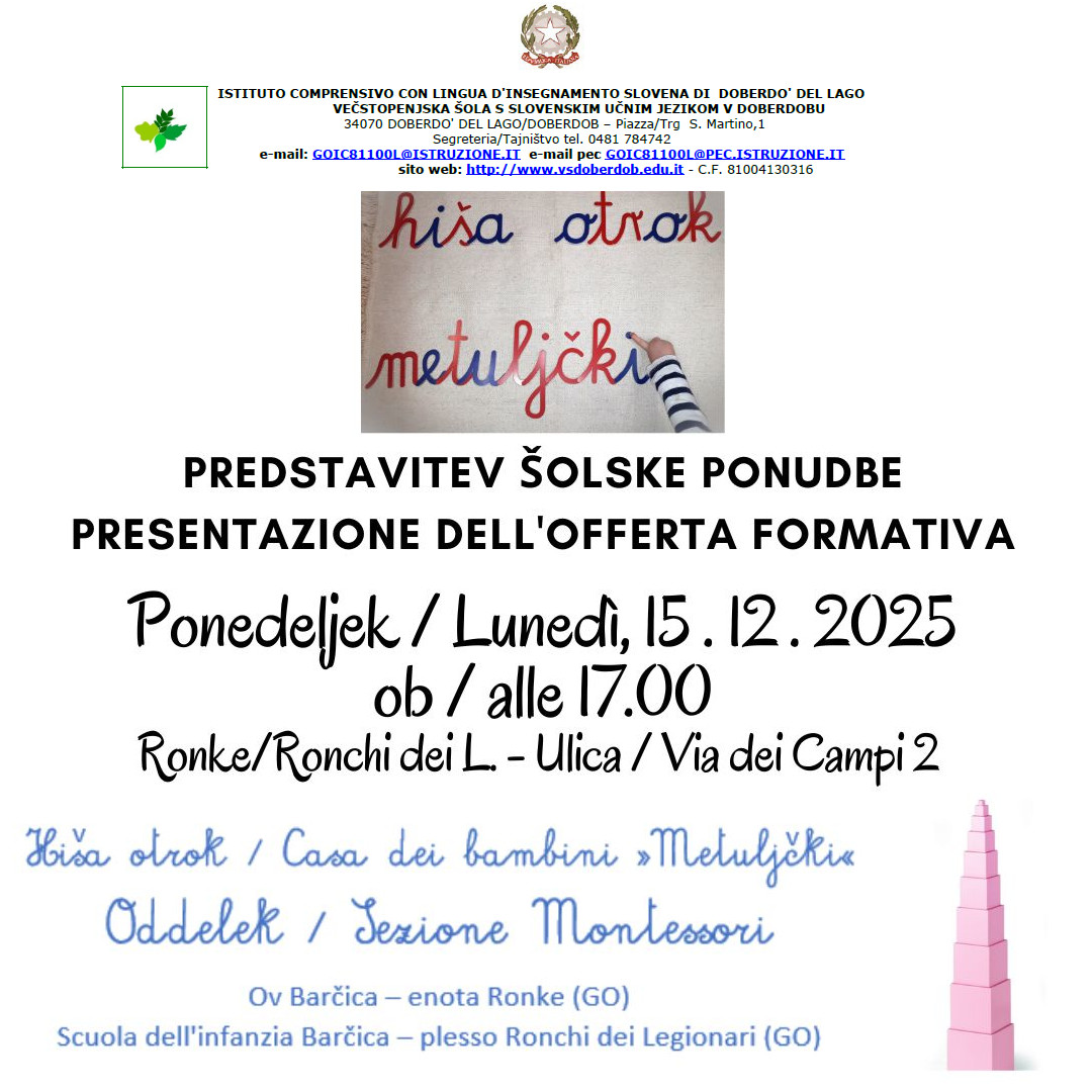 PRESENTAZIONE DELL’OFFERTA FORMATIVA – CASA DEI BAMBINI “METULJČKI” – SEZIONE MONTESSORI