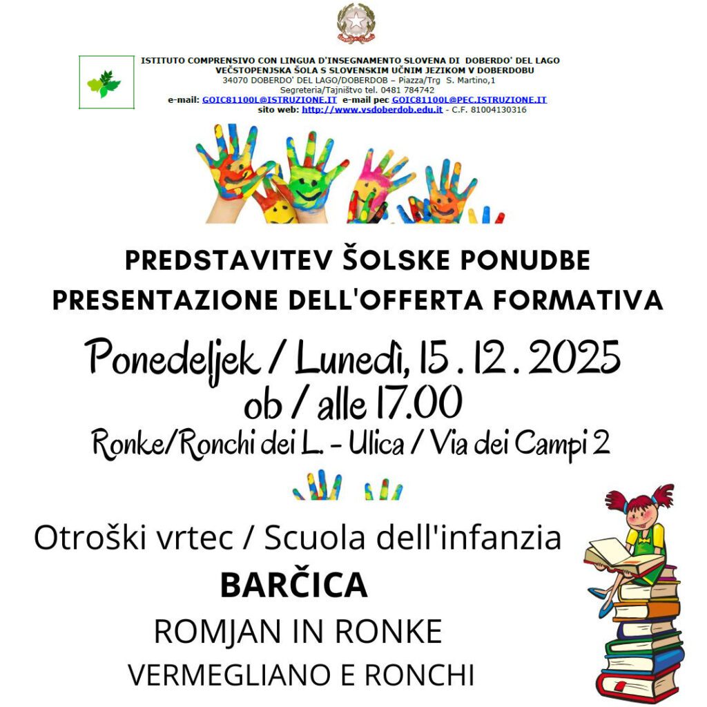 Invito alla presentazione della Scuola dell’infanzia Barčica – sezioni di Romjan e Ronke (Vermegliano e Ronchi).